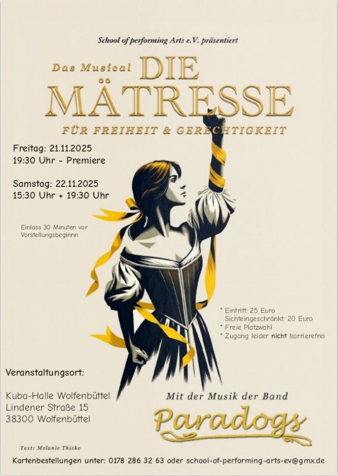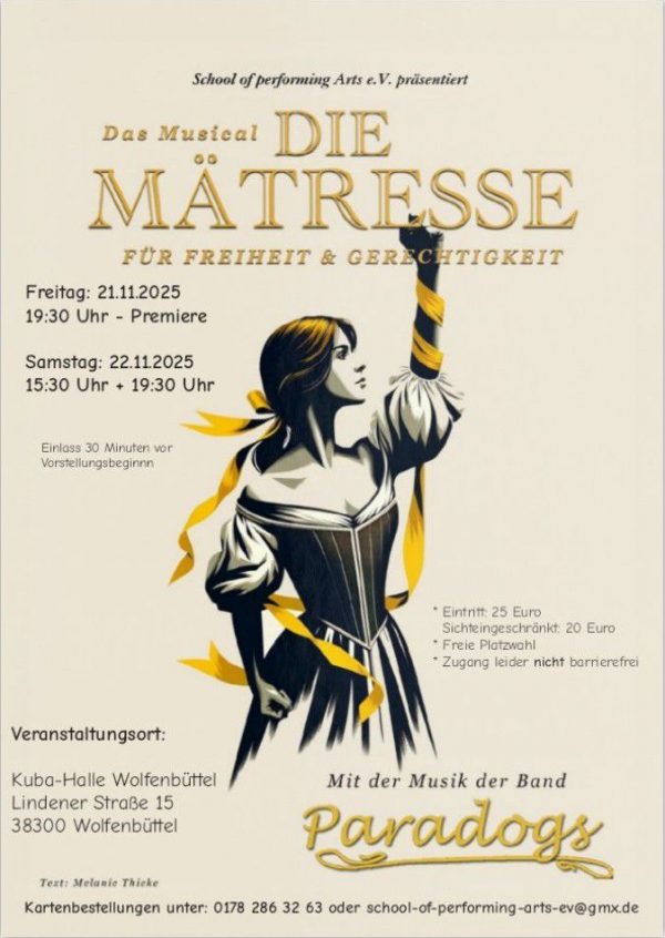 Karten unter 0178 286 32 63 oder school-of-performing-arts-ev@gmx.de